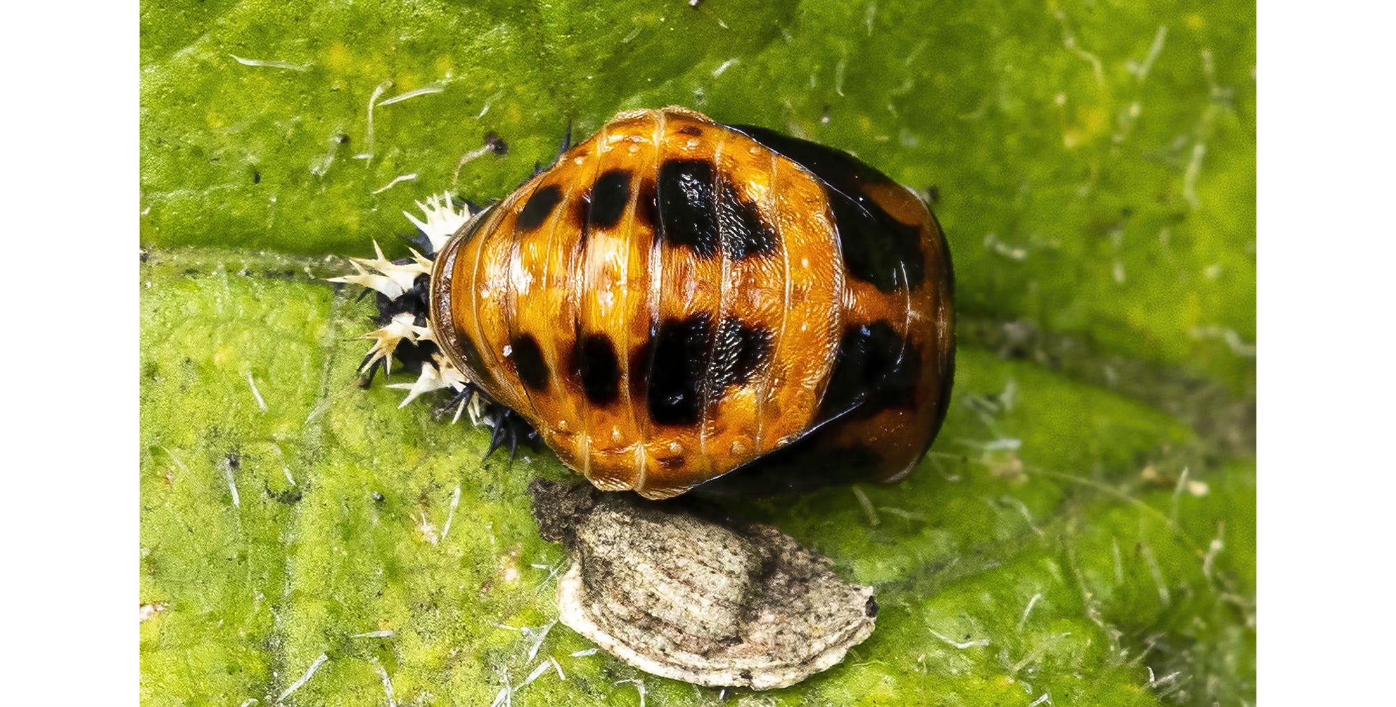 Unlike most native ladybirds, it’ll give you a nip when it feels like it, and if alarmed it spurts out an unpleasant smelly yellow fluid from its leg joints.