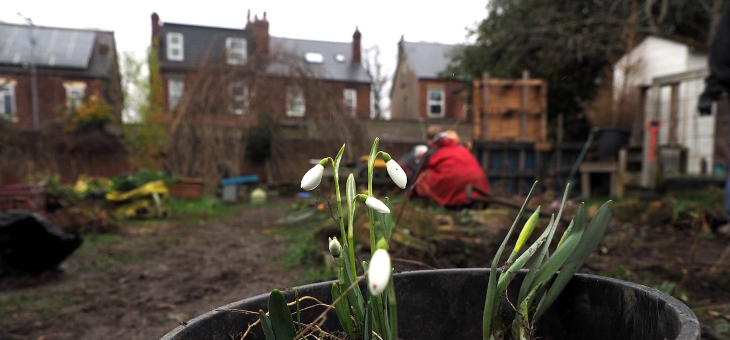 A small gang of volunteers at Woodseats Community Garden are rescuing bulbs from a flower bed renovation. “We’ll be paving the ground here now to make it more accessible, and putting in raised beds,” says garden manager Emma Hogg.