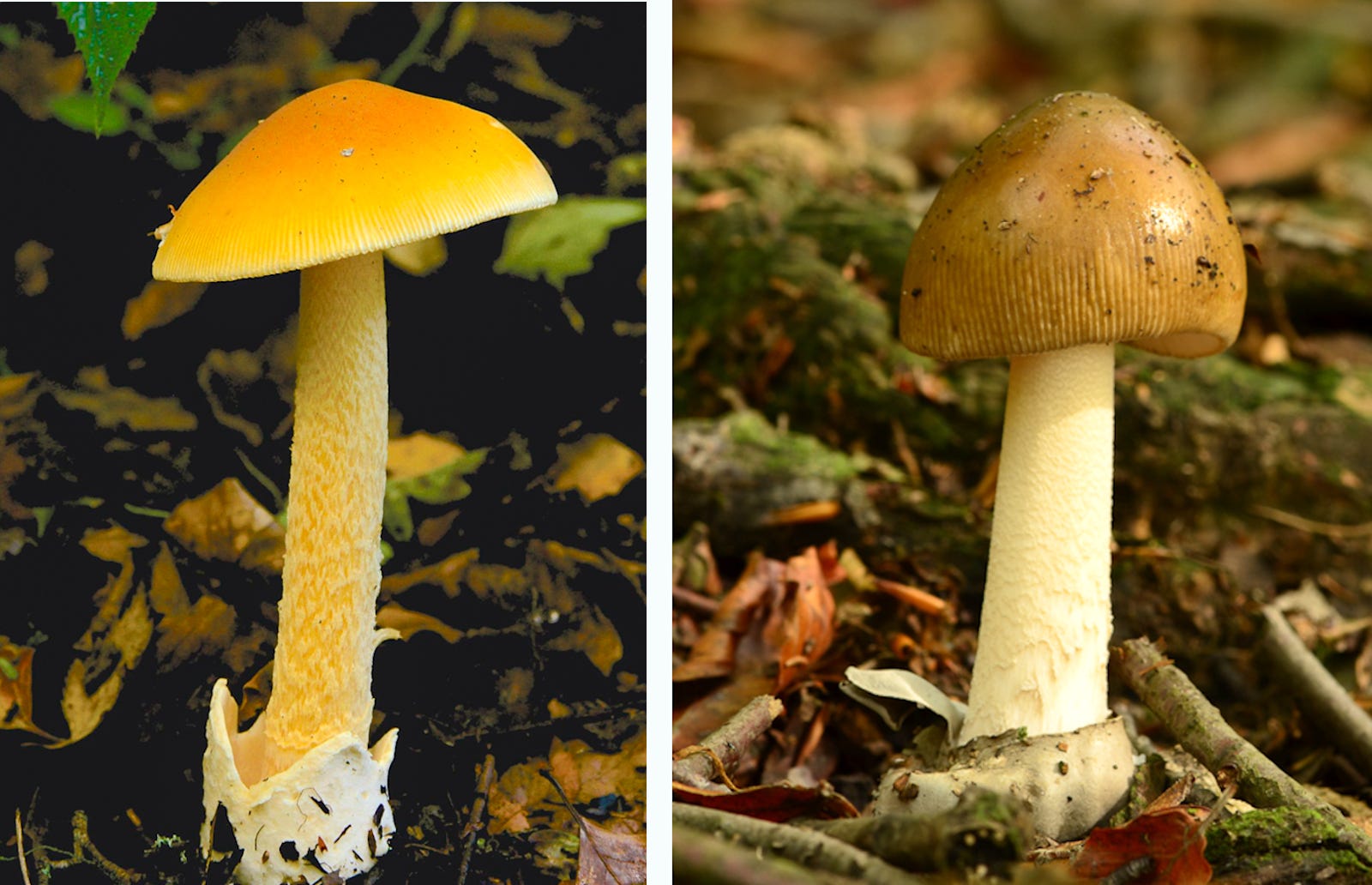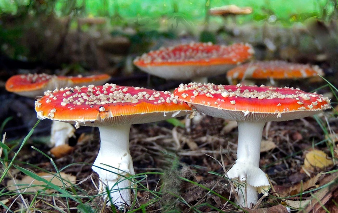 The Fly Agaric and the Grey Spotted Amanita (above) are found in many local woodlands, the stem ring and a bulbous base helps to identify these mushrooms.